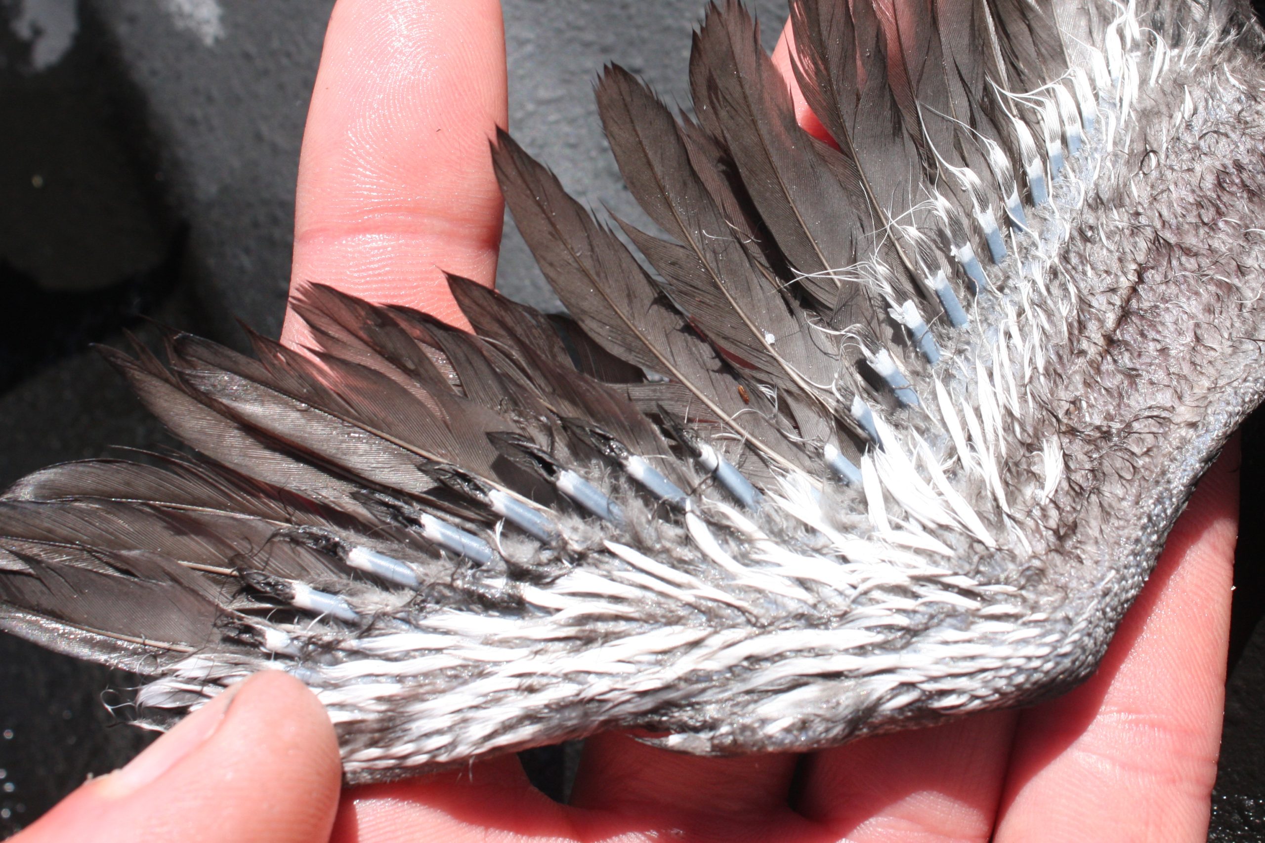 Upon arrival in Weynton Pass yesterday during one of our regular marine surveys we happened upon a phenomenal amount of bird life. This is not unusual for the area during this time of year. In fact, the abundance of bait fish in the water between August and November often attracts so many birds that even rare species or unusual individuals can be spotted. Such was the case last week when the first record in the country of a blue-footed booby was confirmed in this same spot. Another notable record was this leucistic rhinoceros auklet we photographed a few years back.