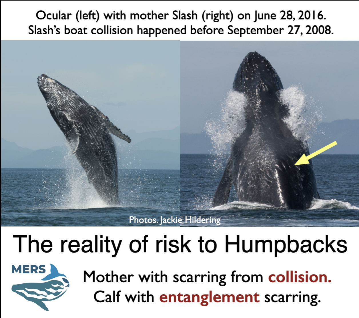 They are not exceptional cases. Our research, done in collaboration with DFO, shows that ~1 in 2 Humpback Whales off BC’s coast have scarring from entanglement. This data provides an indication of how serious the risk of entanglement is but does not reveal how many Humpbacks die after becoming entangled.