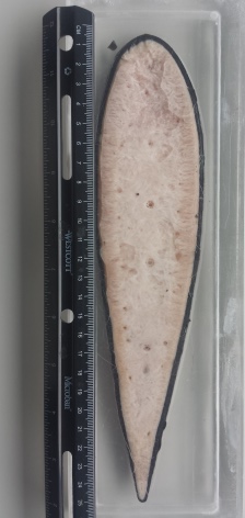 Caption: “A cross-section of a killer whale dorsal fin shows the dense connective tissue inside, but no rigid bones.”