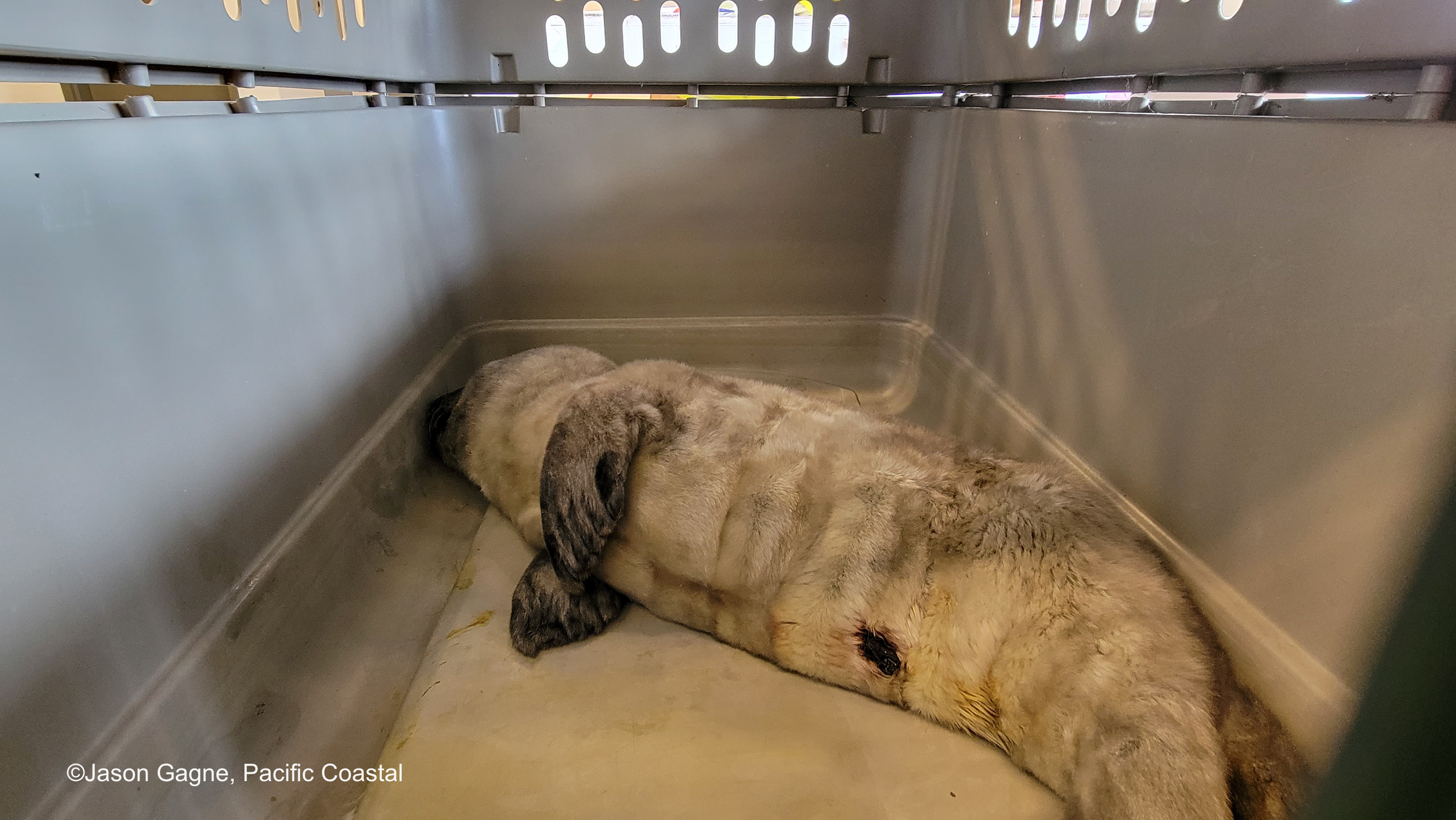 His care and transport are thanks to Marine Mammal Rescue, Pacific Coastal Airlines and the North Island Veterinary Hospital.