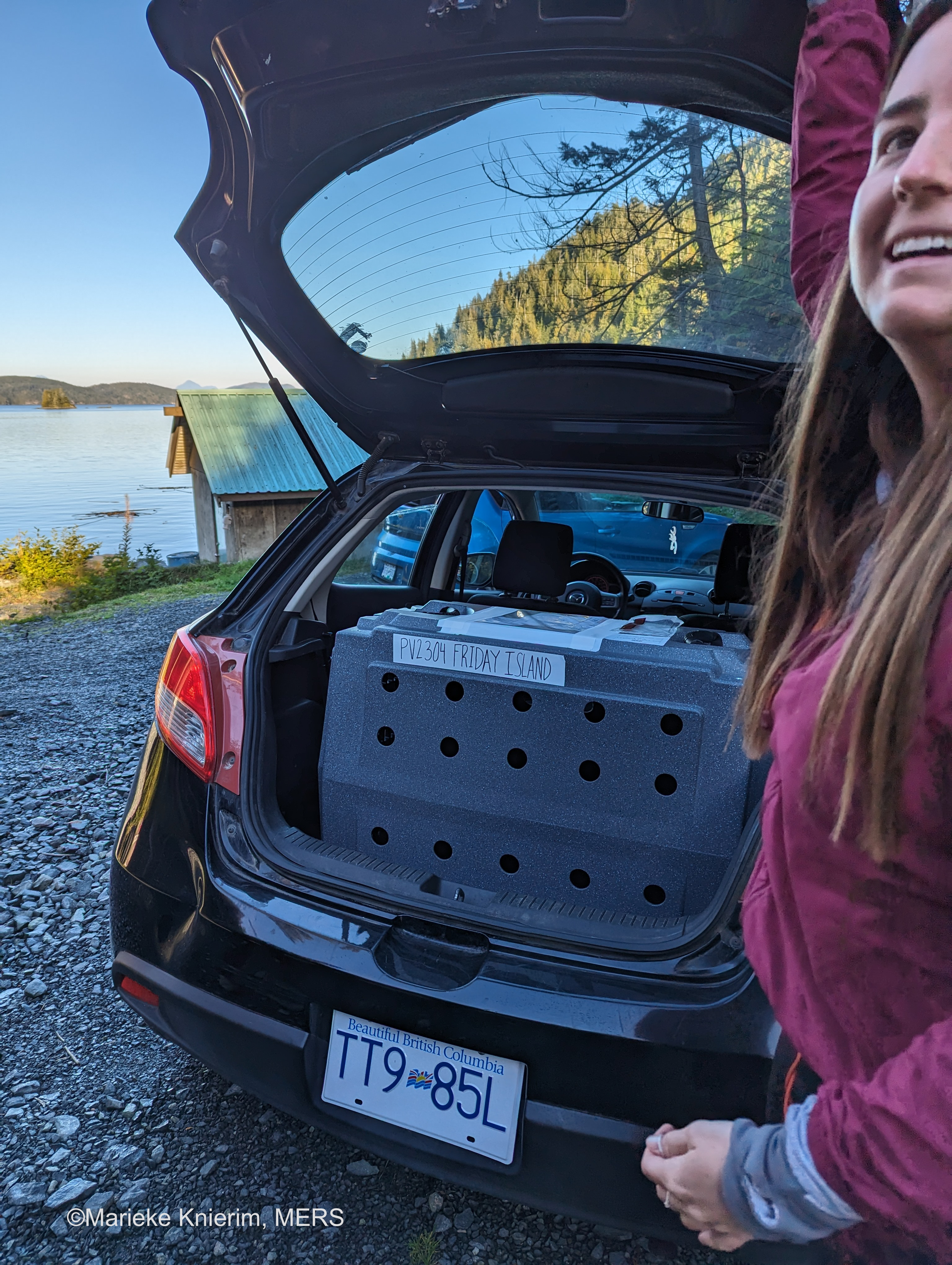 Video of Friday’s return: Scott Turton, Jackie Hildering and Marieke Knierim. Photos as credited on the images. For the keenly observant, Friday has a biodegradable ID tag on his head.